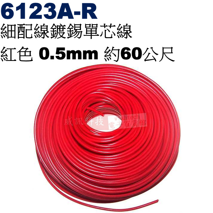 6123A-R 細配線鍍錫單芯線 紅色 0.5mm 約60公尺