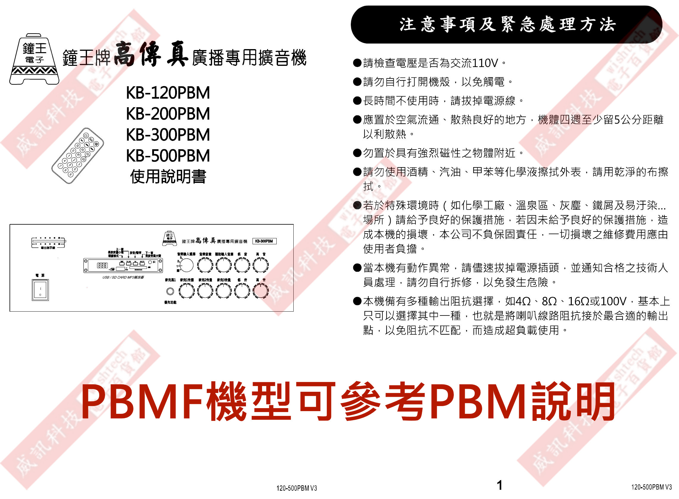 KB-120PBMF 鐘王牌 PBMF HI-FI高傳真擴大機 PB+MP3+FM 120W