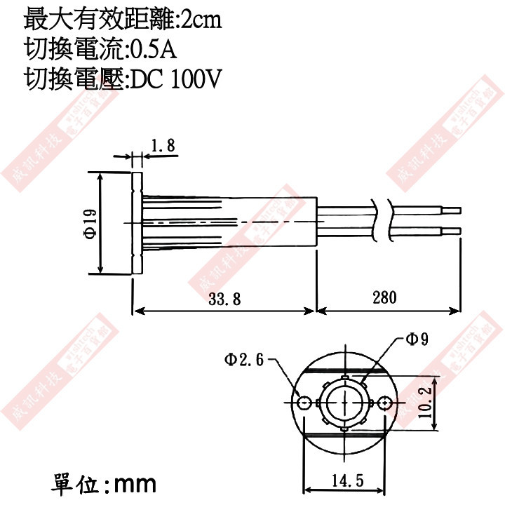 GS-4239D 隱藏式磁磺開關 嵌入式NC接點 合起來導通