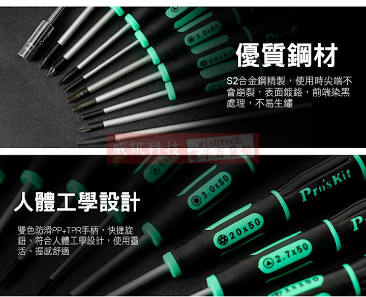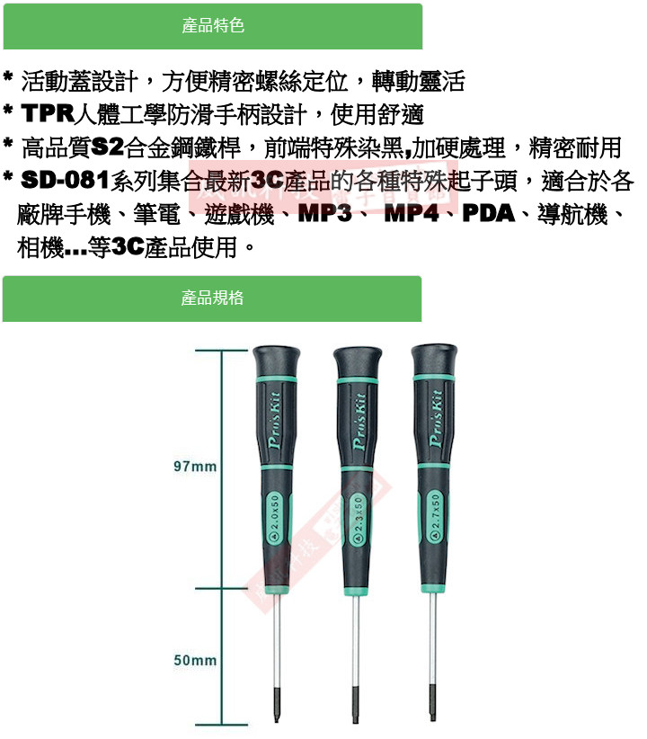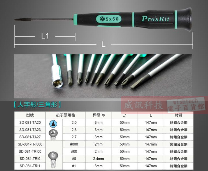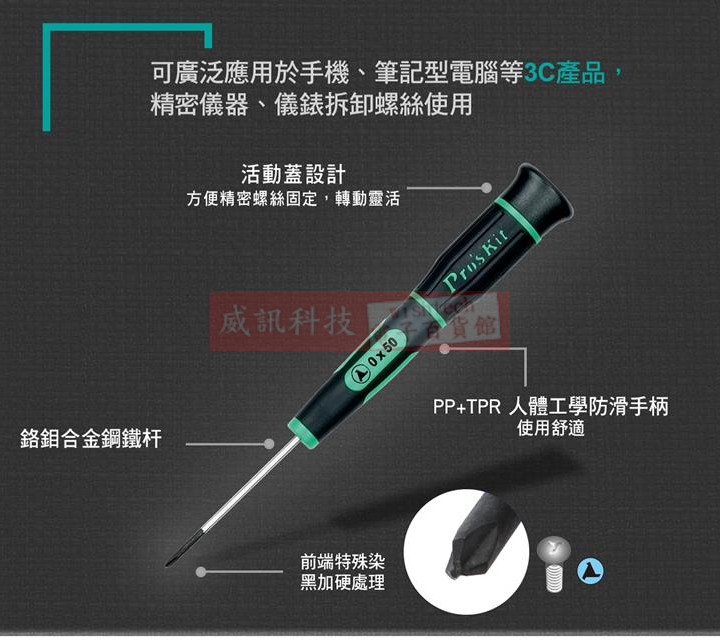 SD-081-TRI000 寶工 Pro'sKit 綠黑人字型精密起子 TRI000x50mm(人字頭x鐵杆長度) 活動蓋設計,方便精密螺絲定位,轉動靈活