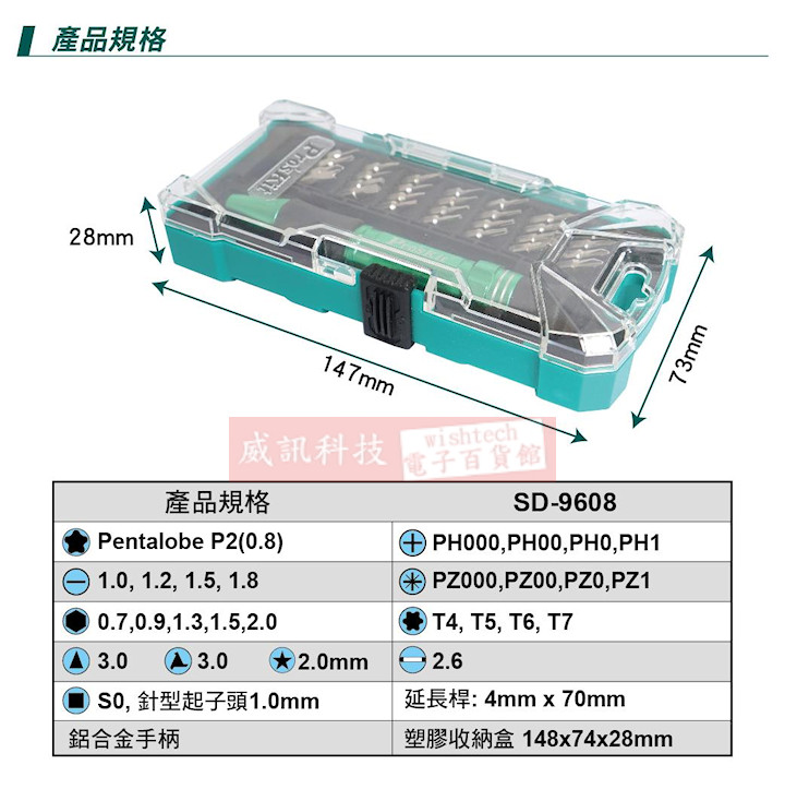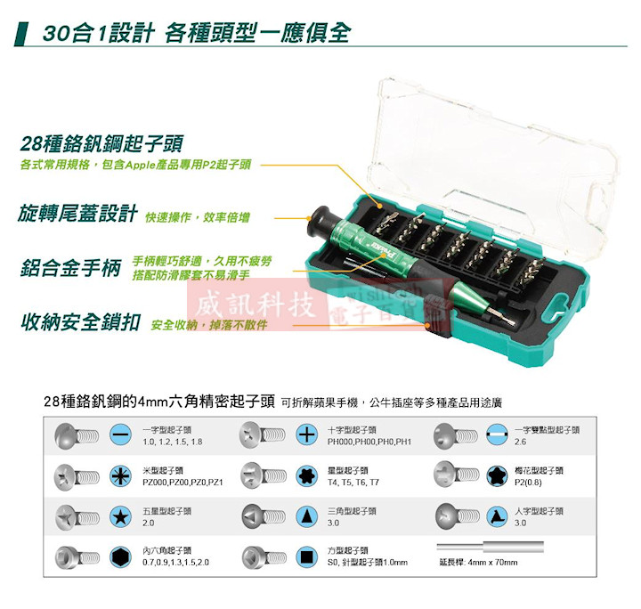 SD-9608 Pro'sKit 30pcs鋁合金手柄精密起子組