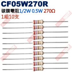 CF05W270R 1/2W碳膜電阻0.5W 270歐姆x10支