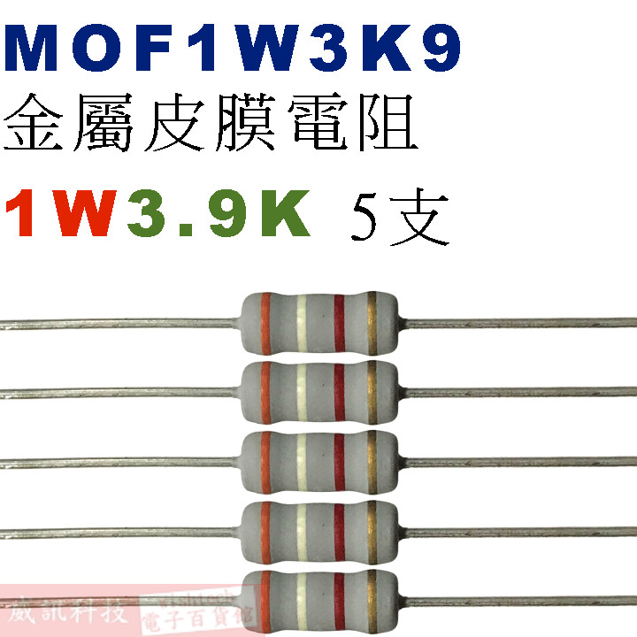 MOF1W3K9 金屬皮膜電阻1W 3.9K歐姆x5支