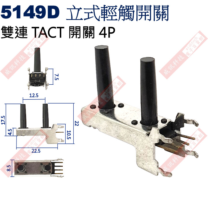 5149D TACT SWITCH 立式輕觸開關 雙連4P