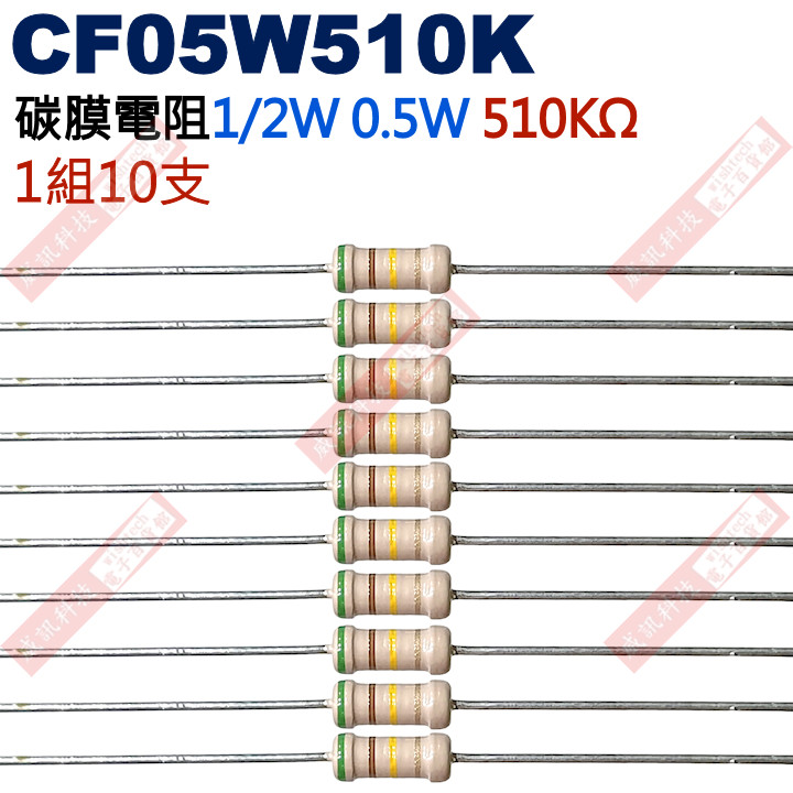 CF05W510K 1/2W碳膜電阻0.5W 510K歐姆x10支