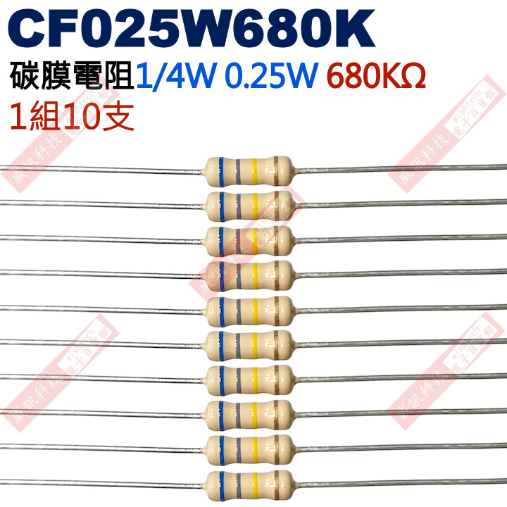 CF025W680K 1/4W碳膜電阻0.25W 680K歐姆x10支