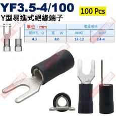 YF3.5-4/100 100顆裝 Y型易進式絕緣端子 螺絲孔4.3mm AWG14-12/2.4-4.0mm²