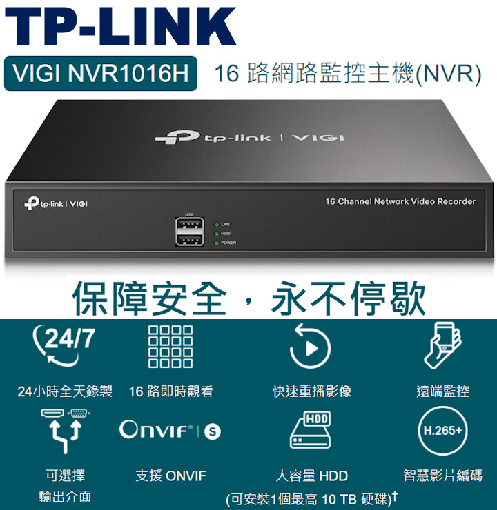 TPLINK VIGI NVR1016H 16 路網路監控主機/監視器主機 NVR 手機監控APP︰TP-Link VIGI 商品內容